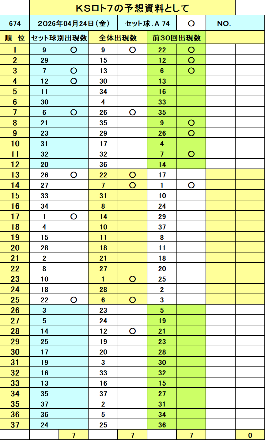 ===◆===◆======◆===◆=== ◆10億円獲得作戦(今週のロト7当選番号予想資料です!)◆